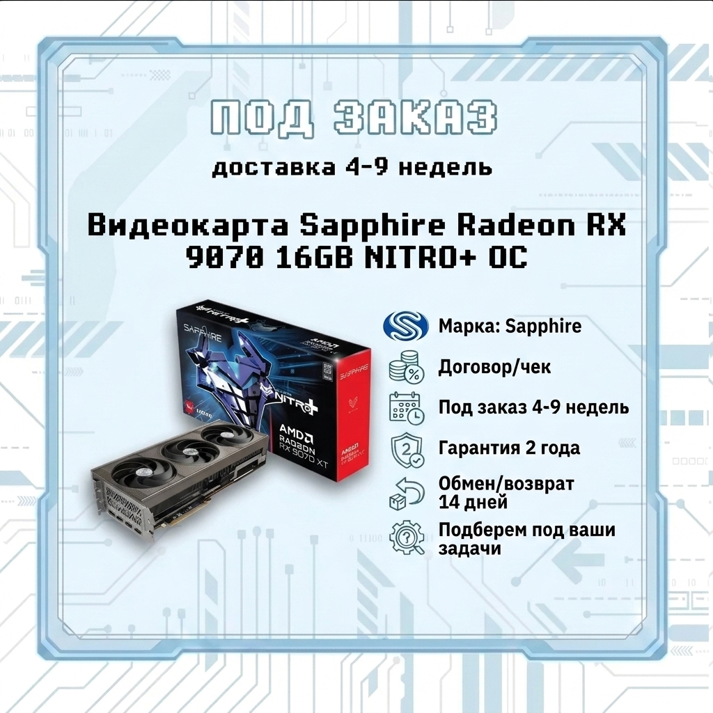 Видеокарта Sapphire Radeon RX 9070 XT 16GB NITRO OC