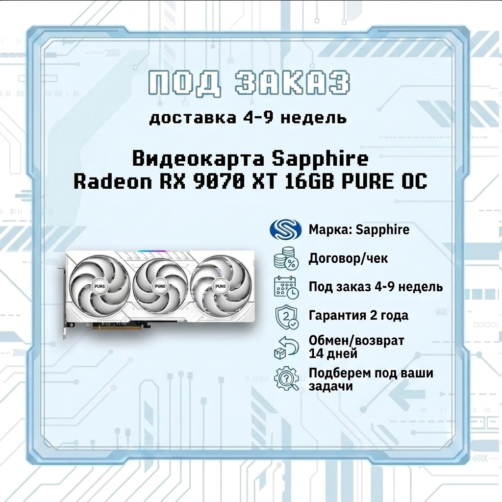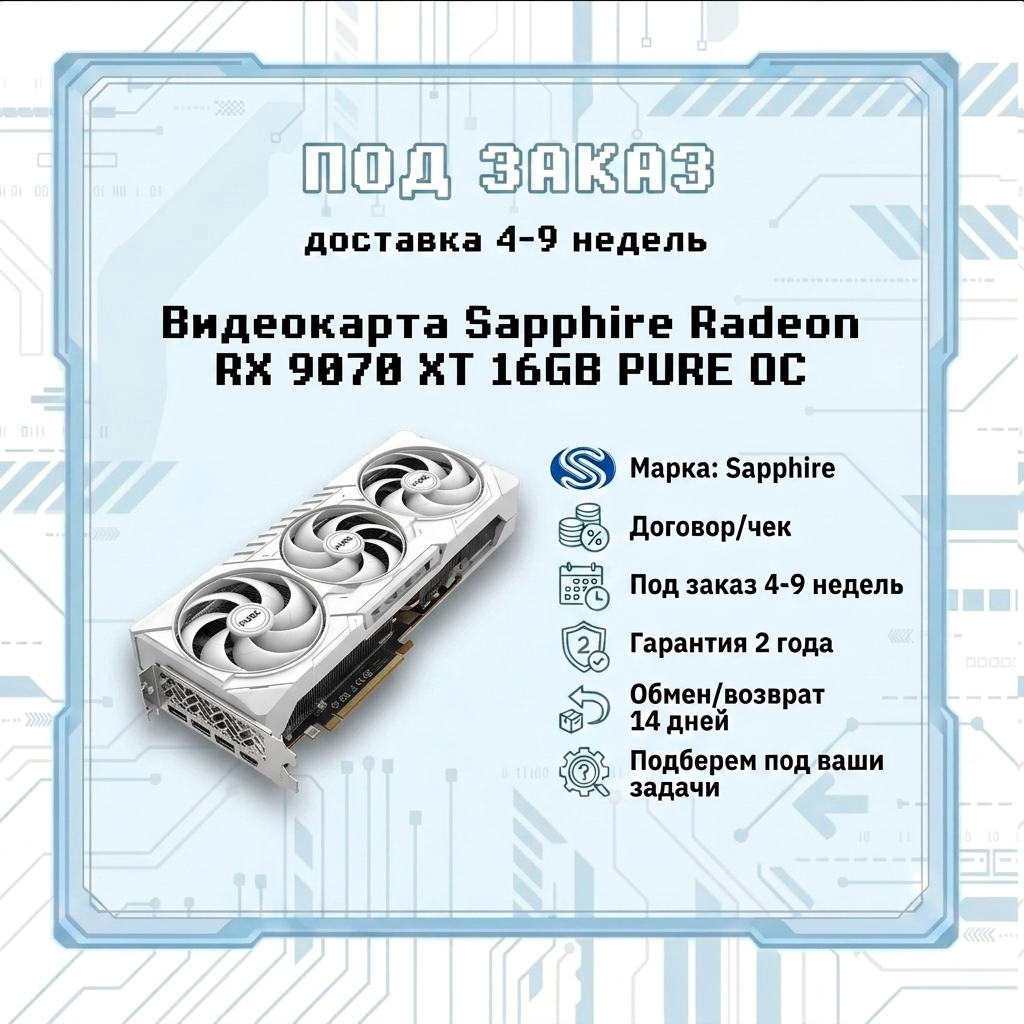 Видеокарта Sapphire Radeon RX 9070 XT 16GB PURE OC
